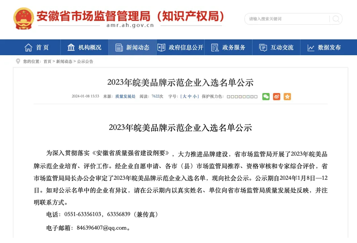 经多方资格审查和专家综合评价,UED官网电气入选“皖美品牌示范企业”名单,荣获“2023年皖美品牌示范企业”称号。