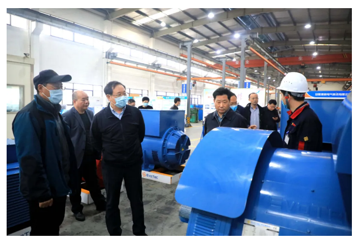 牛厅长一行在公司副总经理石斌的陪同下,参观了UED官网电气的厂区,实地了解产品制造情况。公司副总经理石斌详细介绍了企业发展历程、科技成就以及市场开拓等情况,双方并就当前形势下的发电机行业现状和发展前景进行了深入探讨。